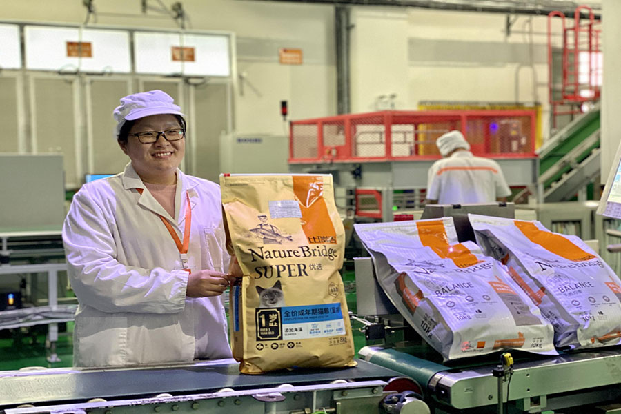 目前,比瑞吉擁有兩條固態(tài)寵物配合飼料生產(chǎn)線和一條半固態(tài)寵物配合飼料生產(chǎn)線,這些生產(chǎn)線均采用國際和國內(nèi)最先進(jìn)的設(shè)備,確保了產(chǎn)品質(zhì)量的穩(wěn)定性和可靠性。固態(tài)寵物配合飼料生產(chǎn)線由自動配料系統(tǒng)、混合機(jī)、粉碎機(jī)、膨化機(jī)、噴涂機(jī)、振動篩等組成,產(chǎn)能達(dá)到5噸/小時;半固態(tài)寵物配合飼料生產(chǎn)線則與利樂公司合作,采用密封灌裝的利樂佳包裝技術(shù),日產(chǎn)能高達(dá)30噸。