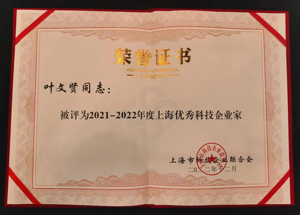 12月8日,上海柯賽德斯加美石油集團有限公司董事長葉文賢被授予“上海市優秀科技企業家”稱號。這是在全國疫情防控新形勢下,對葉文賢同志直面經濟大環境的挑戰,堅持科技創新、堅持實業興企、堅持多品牌運作取得顯著成效的肯定。