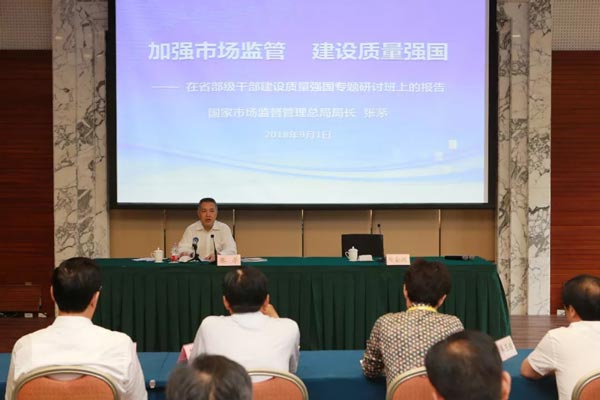 在我國第40個全國“質量月”到來之際,9月1日,由中共中央組織部、中國浦東干部學院和國家市場監督管理總局共同舉辦的“省部級干部建設質量強國專題研討班”在滬開班,這也是繼兩年前在京舉辦首個省部級干部“全面實施質量強國戰略專題研討班”之后的第二個省部級質量強國戰略專題研討班。市場監管總局局長、黨組副書記張茅作為首位授課人,在專題研討班上以“加強市場監管 建設質量強國”為題做了專題講座。